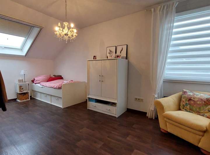 Dieses große Einfamilienhaus in Split-Level-Bauweise befindet sich in einer verkehrsberuhigten Anliegerstraße und ist perfekt geeignet für Familien oder Paare, die ein ruhiges und familiäres Umfeld schätzen.