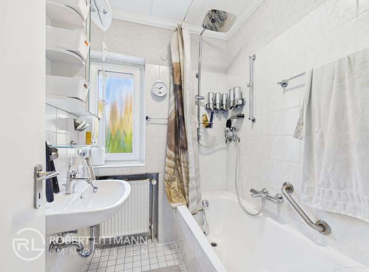 Lediglich das Badezimmer stammt noch aus einer früheren Zeit und bietet Potenzial für eine Modernisierung nach individuellem Geschmack.