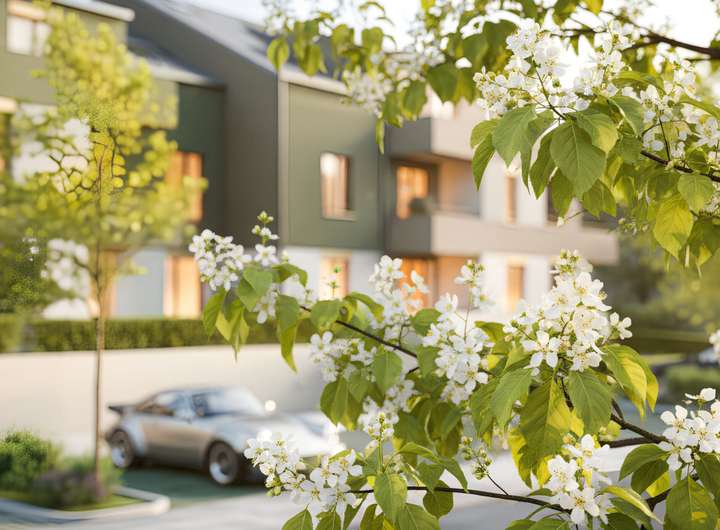 Unter den Häusern befindet sich eine Tiefgarage mit modernen Stellplätzen, Fahrradraum und großzügigen Abstellflächen. Zusätzliche Außenstellplätze ergänzen das Angebot.