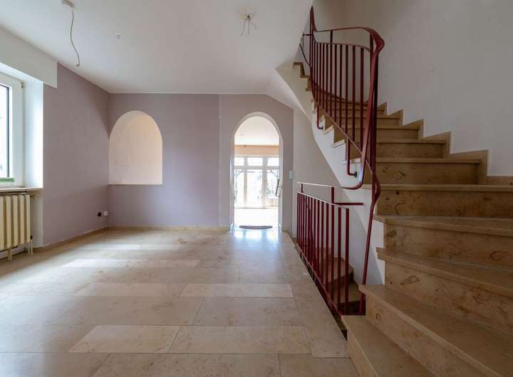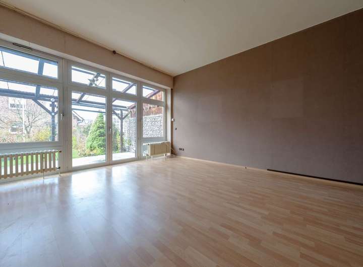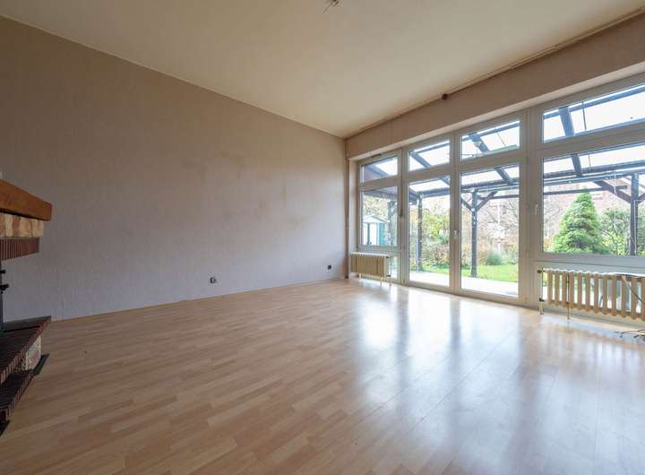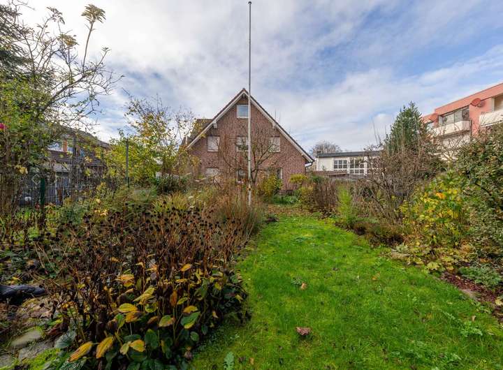 Das Haus präsentiert sich in solider Bauweise und überzeugt durch seine klassische Grundrissstruktur über drei Etagen. Im Erdgeschoss erwarten Sie ein heller Wohn- und Essbereich mit großen Fensterflächen sowie direktem Blick und Zugang in den Garten, der viel Privatsphäre bietet und zum Entspannen einlädt. Die Küche grenzt unmittelbar an und bietet genügend Platz für eine neue Gestaltung nach eigenen Vorstellungen. Der Eingangsbereich wirkt offen und freundlich, ergänzt durch den Treppenaufgang ins Obergeschoss.