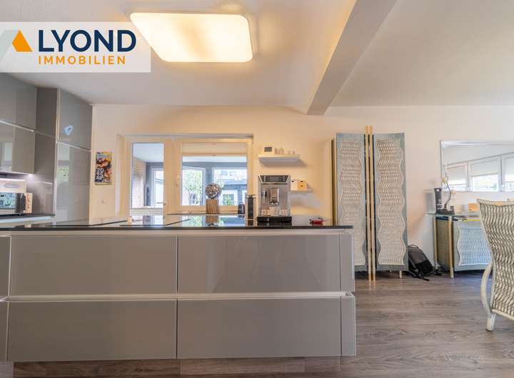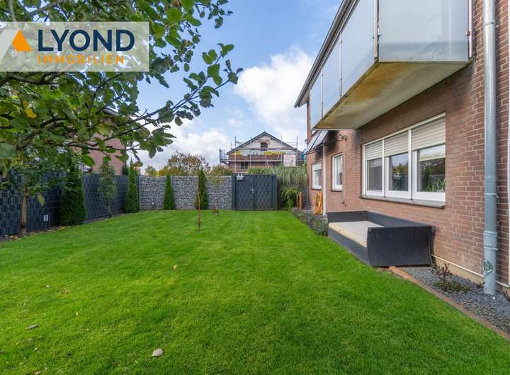 Die Erdgeschosswohnung mit ca. 85 m² begeistert mit einem großzügigen Wohn- und Essbereich, der durch einen lichtdurchfluteten Wintergarten erweitert wird. Die moderne Einbauküche überzeugt mit hochwertigen Glasfronten, einer edlen Granitarbeitsplatte, Cerankochfeld mit Bodenabzug, einem Miele-Geschirrspüler (2025) sowie einem Neff-Backofen (2024). Darüber hinaus stehen ein Schlafzimmer, ein modernes Duschbad, ein Hauswirtschaftsraum und elektrische Rollläden zur Verfügung. Die weißen Kunststofffenster im Erdgeschoss wurden 2015 erneuert, ebenso wie die Haustür.
