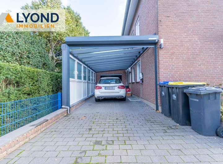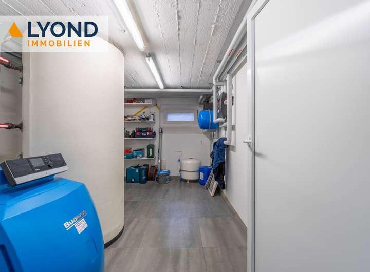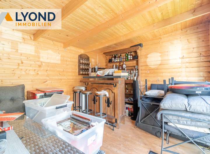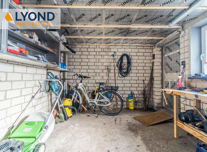 Für Fahrzeuge stehen ein Carport (Wallbox), eine Garage sowie 2 Stellplätze bereit. Ein Gartenhaus ergänzt das Nutzflächenangebot. Beheizt wird das Haus über eine effiziente Ölzentralheizung mit Solarunterstützung.