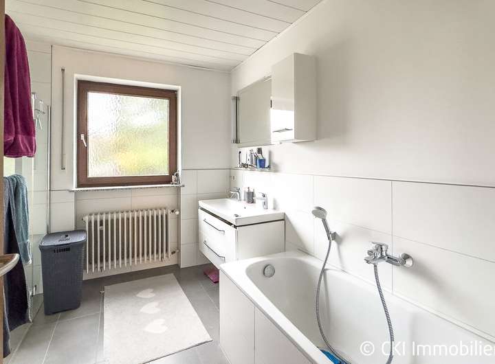 - taghelles, modernisiertes Bad mit bodengleicher Dusche, Badewanne, Waschbecken, separates WC;