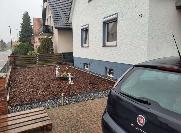 Vor der Garage ist sehr viel Platz, so dass auf dem eigenen Grundstück noch 2 weitere Autos dort parken können.