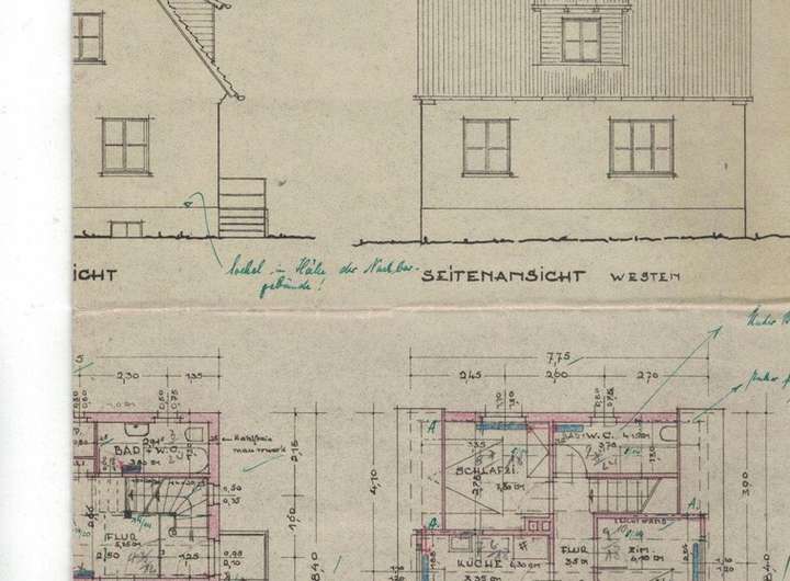 Das Einfamilienhaus wurde im Jahre 1951 in massiver Bauweise errichtet und ist eingebettet in ein ca. 600 m² großes Grundstück. Die Wohnfläche beträgt 115 m². Falls Sie mehr m² Wohnfläche benötigen, so ist ein Anbau hinterm Haus möglich.