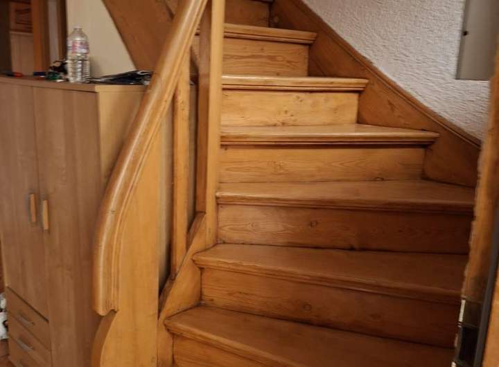 Im Obergeschoss befinden sich 4 Schlafzimmer. Der Boden besteht aus Holzdielen. Eine Toilette mit Bad ist ebenfalls vorhanden.