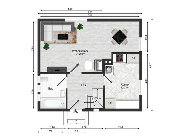 Die Aufteilung ist praktisch und gut nutzbar- Die Immobilie verfügt über ein gemütliches Wohnzimmer, eine separate Küche mit moderner Einbauküche, zwei große Schlafzimmer sowie ein helles Badezimmer. Der Keller bietet zusätzliche Abstellfläche und vielfältige Nutzungsmöglichkeiten.