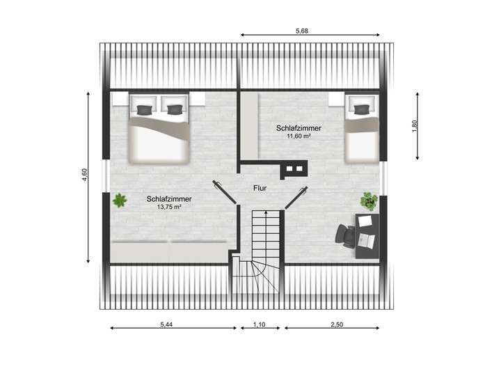 Ein positiver Bauvorbescheid für einen Anbau mit einer Grundfläche von ca. 60 qm liegt dem Eigentümer vor. Dies bietet Ihnen das Potential, die Wohnfläche wesentlich zu vergrößern.