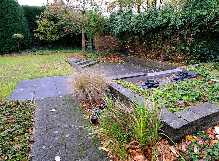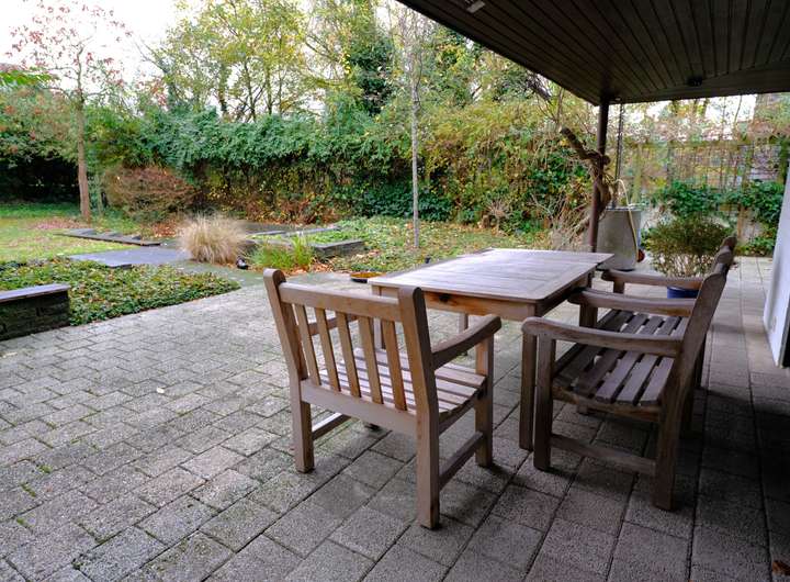 Der umzäunte Garten wurde vor einigen Jahren mit Hilfe eines Gartenarchitekten neu angelegt und bietet drei Terrassen. Dabei ist der Garten nach Süden ausgerichtet und von außen nahezu uneinsehbar.
