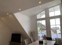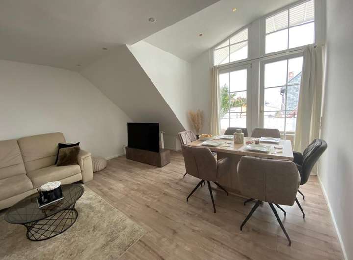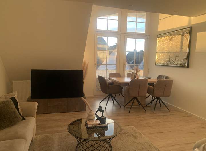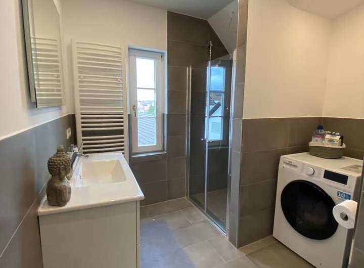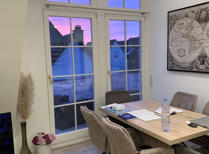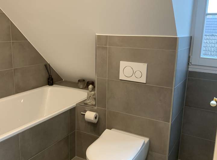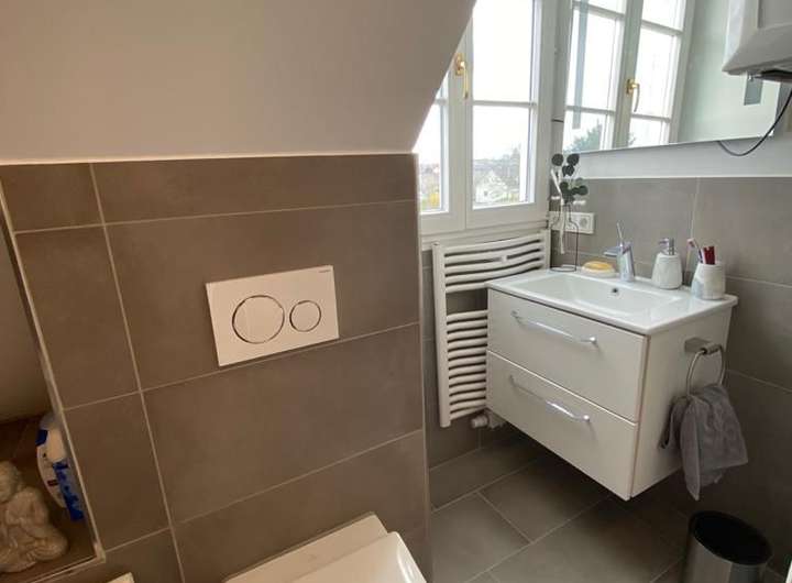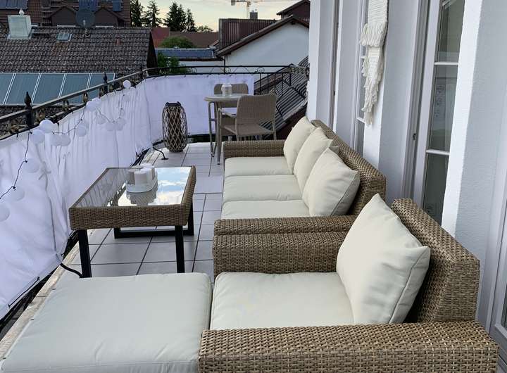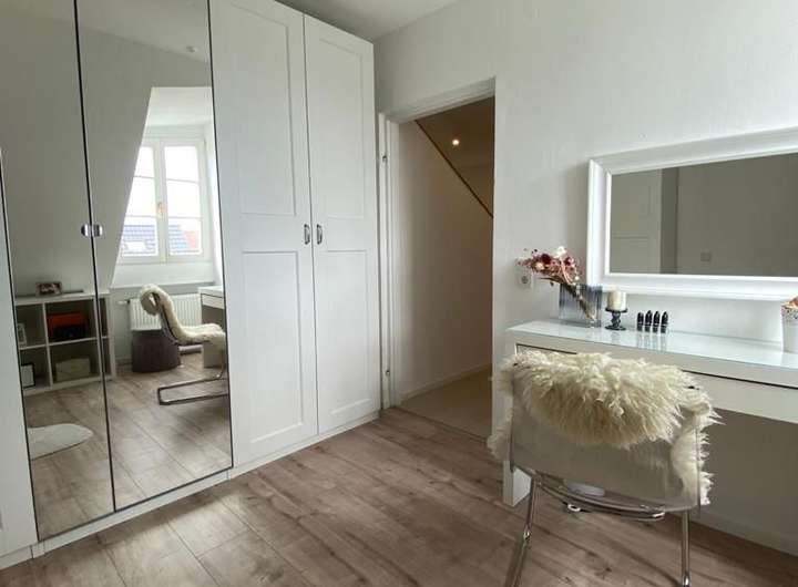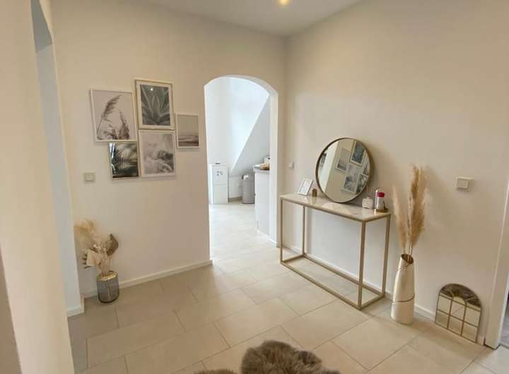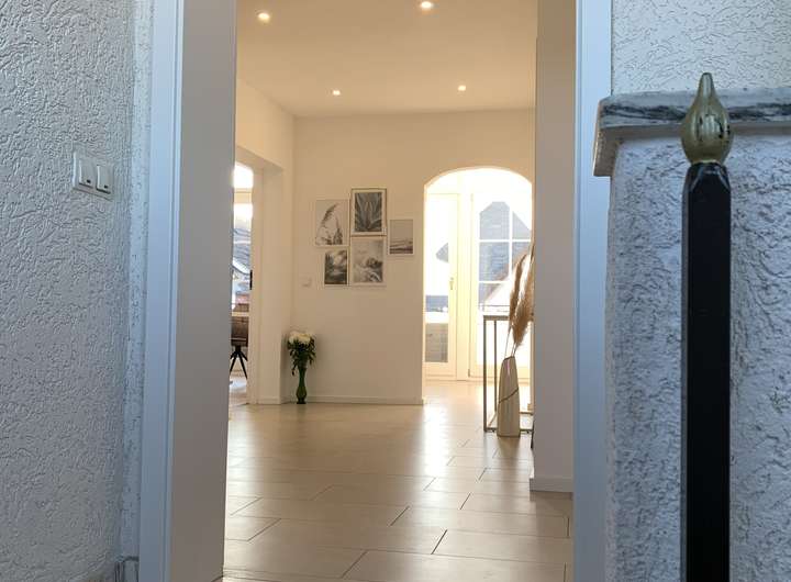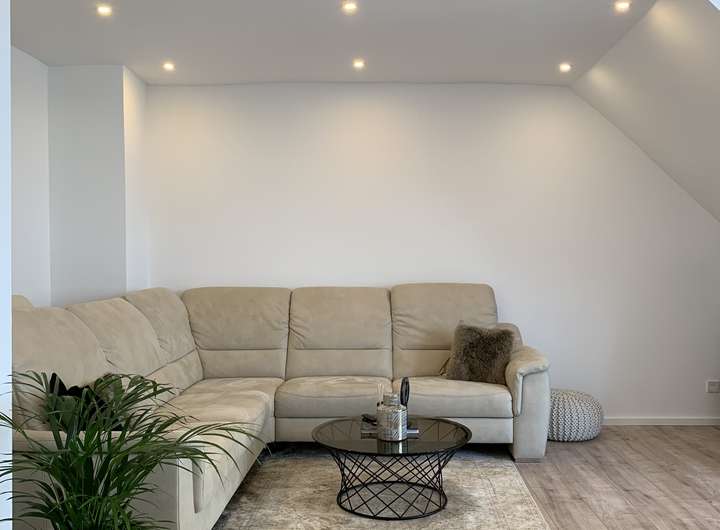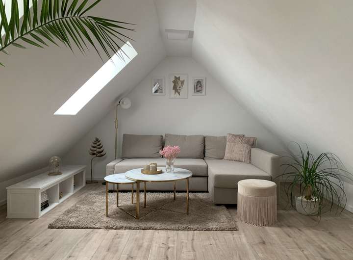 Diese lichtdurchflutete Maisonettewohnung befindet sich in einem gepflegten Mehrfamilienhaus aus dem Jahr 2002 mit nur vier Parteien und wurde wunderschön renoviert/ modernisiert in 2019. Sie besticht durch einen hellen, stilvoll eingerichteten Wohnraum und eine durchdachte Raumaufteilung auf zwei Ebenen. Die untere Ebene bietet eine großzügige Küche mit Einbauküche und Abstellkammer sowie Zugang zur Sonnenterrasse. Zwei kleinere Zimmer mit jeweils ca. 10 m² eignen sich ideal als Schlaf- und Ankleidezimmer. Das Wohnzimmer mit ca. 18 m² ist lichtdurchflutet dank bodentiefer Fenster und bietet ebenfalls Zugang zur Sonnenterrasse, welche im Sommer zum Grillen und sonnenbaden einlädt. Zwei vollwertige Badezimmer - eines mit Dusche, das andere mit Badewanne - runden das Raumangebot ab. Das gedämmte Dachstudio mit ca. 28 m² bietet zusätzlichen Platz, ist aktuell als Büro und Gästezimmer genutzt, und verfügt zusätzlich im hinteren Bereich über reichlich Stauraum. Das Dachgeschoss beinhaltet alle Anschlüsse wie Wasser, Gas & Strom und kann somit bei Bedarf auch als vollwertiger Wohnraum genutzt werden (eigene getrennte Wohnung mit eigener Küche & Bad). Ein Kellerabteil ist zudem vorhanden und eine praktische Garage steht ebenfalls zur Verfügung, die genug Platz für große Autos bietet. Diese Maisonettewohnung überzeugt durch ihre hochwertige Ausstattung, die praktische Aufteilung und den hellen, einladenden Charakter - perfekt für anspruchsvolle Käufer, die ein modernes und stilvolles Zuhause schätzen.