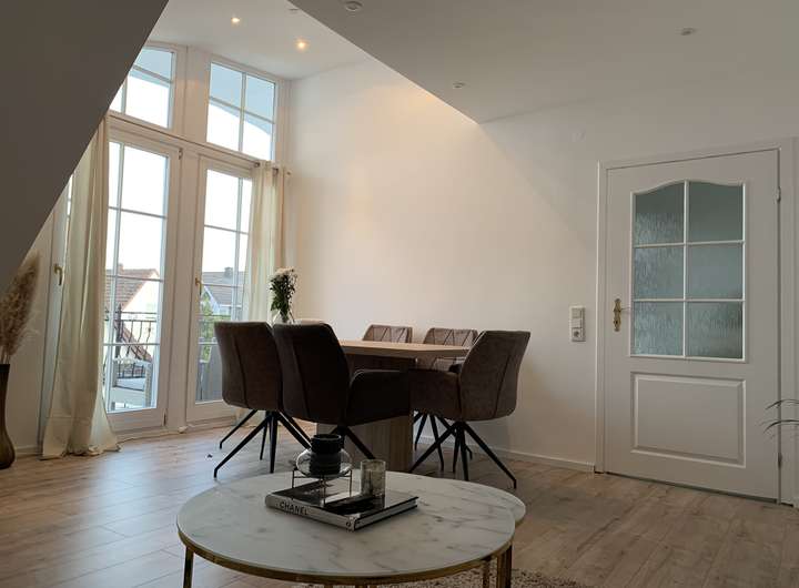 Moderne helle 3,5-ZKB Maisonette-Wohnung mit hohen Fenstern, Sonnenterasse, Garage & Keller!