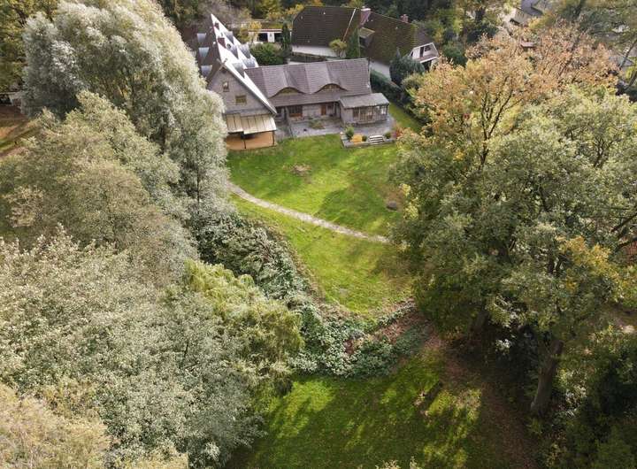 Der Hausteil bietet direkten Zugang zum parkähnlichen Grundstück, das unmittelbar an den idyllischen Alsterlauf grenzt. Spaziergänge, Naturerlebnisse oder ruhige Stunden am Wasser werden hier zum täglichen Begleiter.