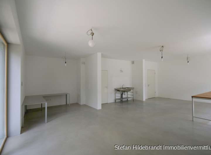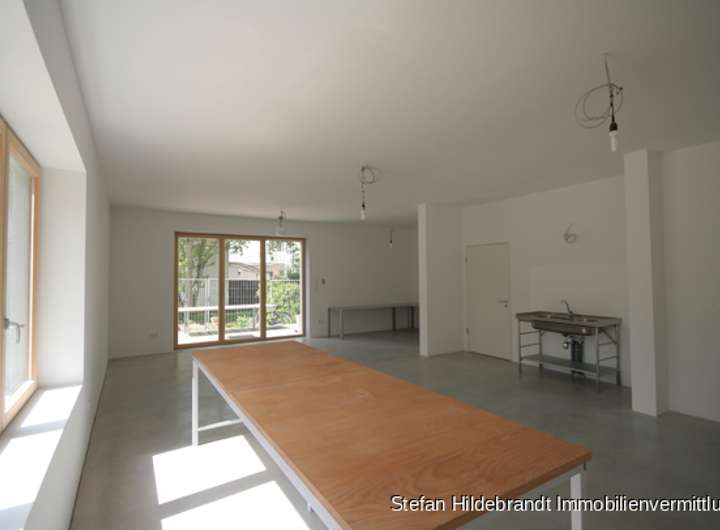 Das derzeit im Erdgeschoss genutzte Atelier lässt sich selbstveständlich auch anders nutzen, oder aber auch als Art Einliegerwohnung für ein Familienteil um-/ausbauen.