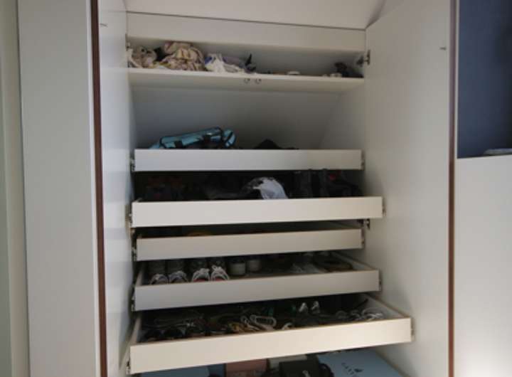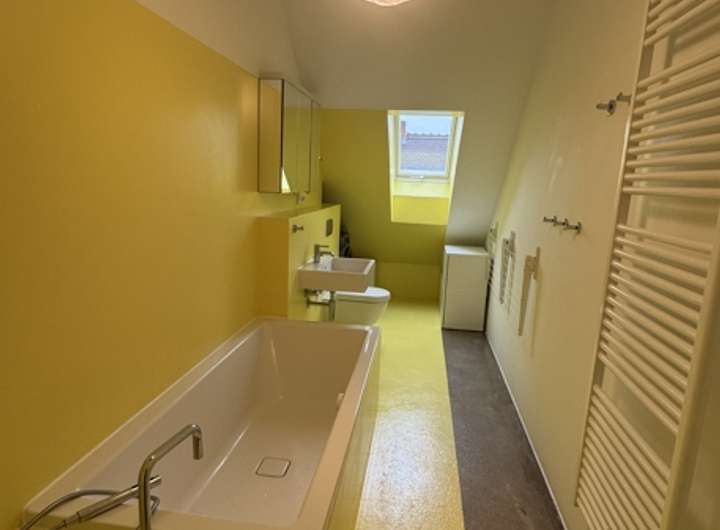Das Dachgeschoss ist als Elternbereich mit großem Tageslichtbad ausgebaut. In allen Schrägen wurden maßangefertige Einbauschränke in weiß verbaut. Teilweise bis ca. 1 Meter Tiefe. Ein Platzangebot erster Klasse.