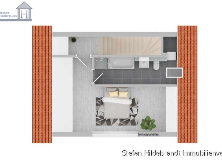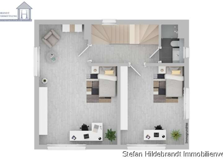 Im ersten Obergeschoss befinden sich zwei Räume und ein Duschbad. Es ist bereits vorbereiet, dass ein Raum mit geringem Aufwand auch in zwei Räume unterteilt werden könnte.