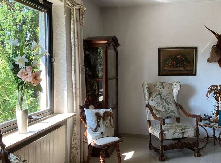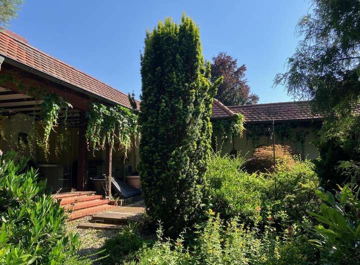 Stilvoll möbliertes, großzügig und exklusiv ausgestattetes Ein- Zweifamilienhaus mit Einliegerwohnung u. einer Netto-Wohnfläche von 280,55 m² sowie einer Gesamt-Nutzfläche von 382 m², 1990 vollständig entkernt und generalsaniert und seither ständig modernisiert. Im September 2025 wurden zuletzt noch einige weitere Instandhaltungs- und Verschönerungsmaßnahmen durchgeführt. Das Haus mit sep. Einliegerwohnung ist ab sofort bezugsfertig u.a. mit beheizbarem Wintergarten, Sauna u. Wellnessbereich, Gartenteich, Gewächshaus, Gartenhaus, Hundezwinger mit sep. Hundefreilaufgehege, überdachten Innenhof sowie eine weitere Südterrasse, eingebettet in einem eingewachsenen 1100 qm großen Traumgarten mit altem Obstbäumen u. Baumbestand bevorzugt an Ärzte, Beamte oder Angestellte im öffentlichen Dienst etc. von privat zu vermieten - die Souterrainwohnung mit Küche, Bad, Wohnbereich hat große Tageslichtfenster (wg. leichter Hanglage) und einen sep. Eingang, Sprechanlage uvm. mit direkten Zugang zum Garten.