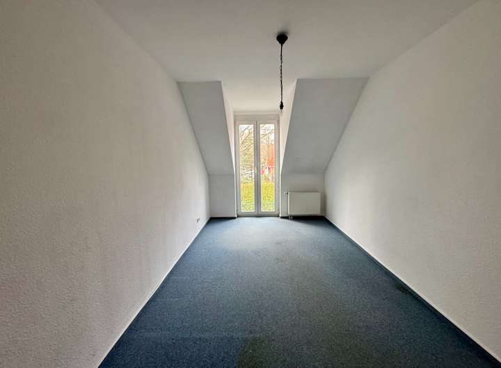 Das Obergeschoss bietet ca. 47 m² Wohnfläche und umfasst insgesamt drei Zimmer. Das ursprüngliche Schlafzimmer mit rund 21 m² wurde in zwei gleich große Räume unterteilt – ideal als Kinderzimmer, Homeoffice oder Ankleide. Ein weiteres Schlafzimmer mit ca. 14 m², ein Flur, eine Abstellkammer sowie das Tageslichtbad mit Wanne runden diese Etage ab.
