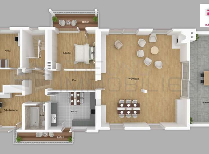 Bitte beachten Sie, dass die Grundrisse (2D/3D) ausschließlich der Illustration dienen . Die gezeigte Material- und Farbauswahl versteht sich als künstlerische Darstellung und dient lediglich zu