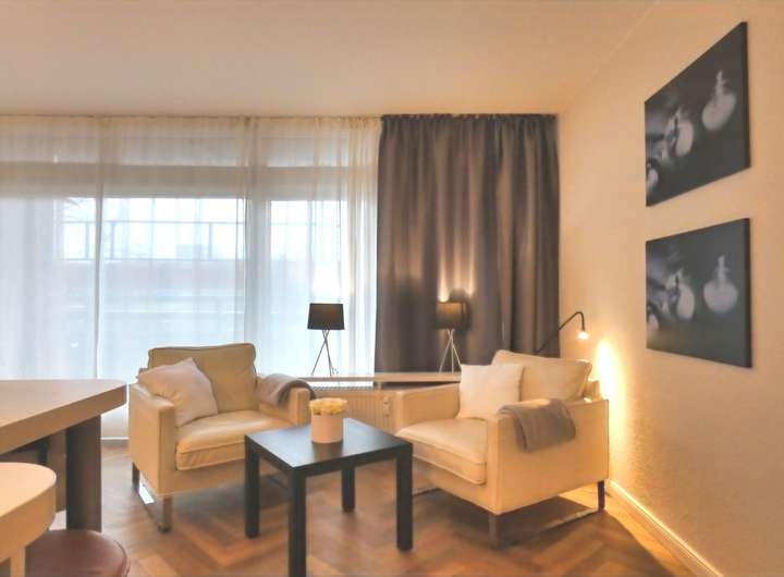 1 geräumiger Wohnbereich mit schicker Sesseln und Home-Office-Bereich
