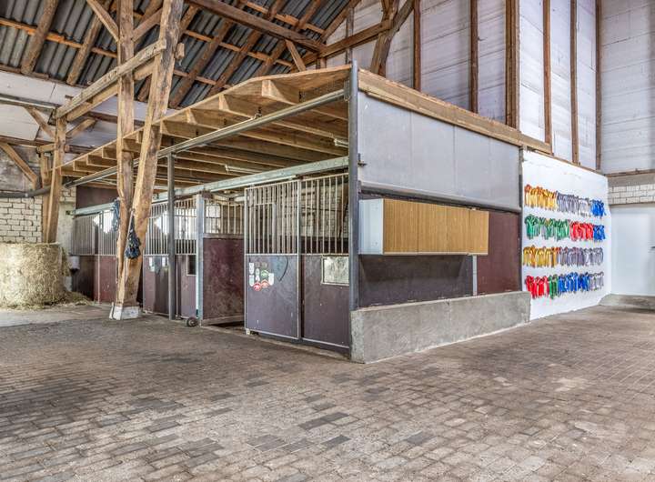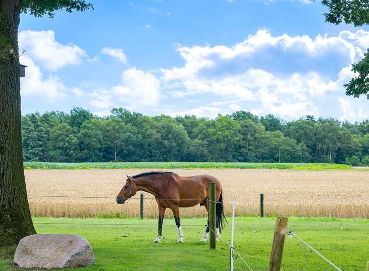 Für Pferdehaltung bestehen ideale Bedingungen. Das Wirtschaftsgebäude verfügt über flexibel gestaltbare Pferdeboxen, Lagerflächen für Heu und Stroh, einen Pflegebereich und eine Sattelkammer. Ein eingezäunter Außenreitplatz mit Naturboden sowie angrenzende Weideflächen ergänzen das Angebot.