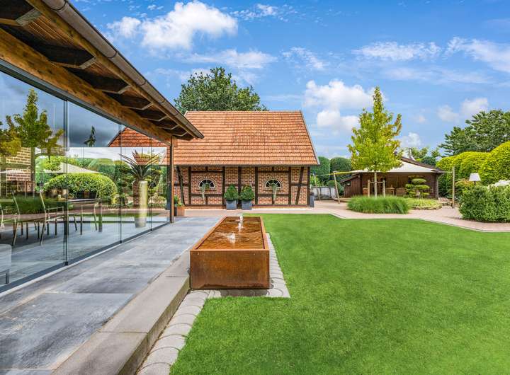 - Weitläufiges Grundstück mit Wirtschaftsgebäuden, Reitplatz und Weideflächen