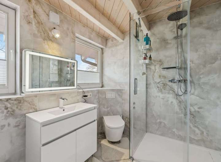 Zwei elegante Bäder, eines davon mit einer neuen Badewanne sowie eine Gäste-WC bietet Komfort für alle Familienmitglieder.