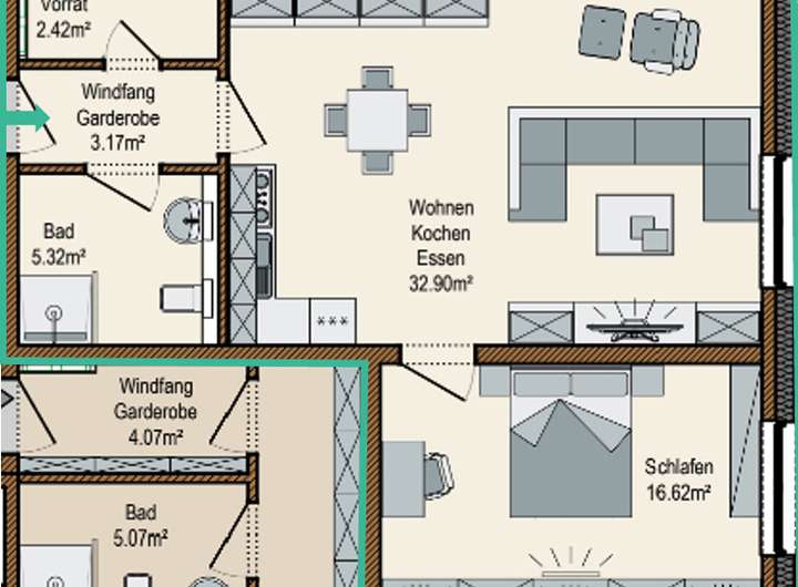 • 2 Zimmer mit ca. 60,43 m² Wohnfläche