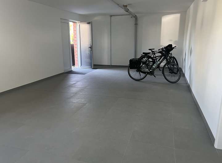 • Ebenerdige Fahrrad- und Kinderwagen-Garage