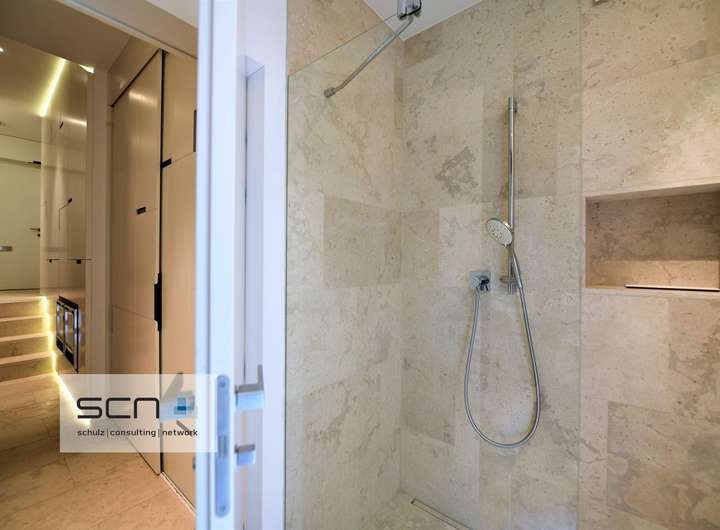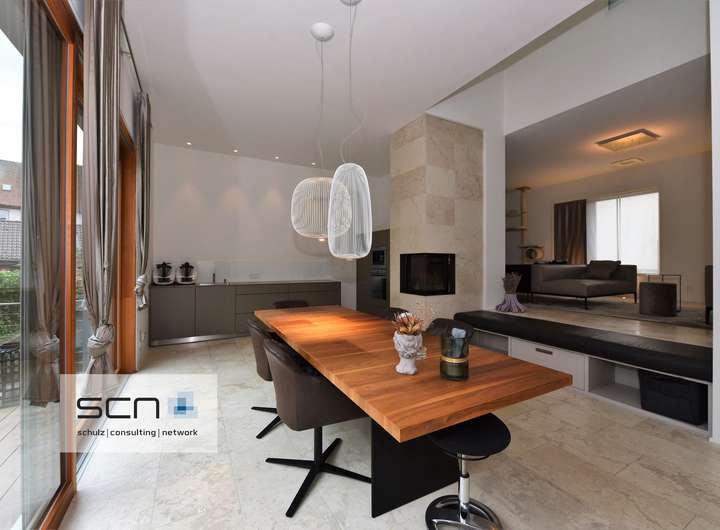 Dieses exklusive Haus mit ca. 215 m² Wohnfläche und 300 m² Grundstücksfläche bietet mit 7 Zimmern und 3 Bädern viel Platz. Das Haus verfügt über eine luxuriöse Ausstattung und wurde mit einer Garage versehen. Ein Gäste-WC ist ebenfalls vorhanden. Die hochwertige Bulthaup-Einbauküche ist bereits integriert, ebenso wie ein offener Kamin und eine Sauna.