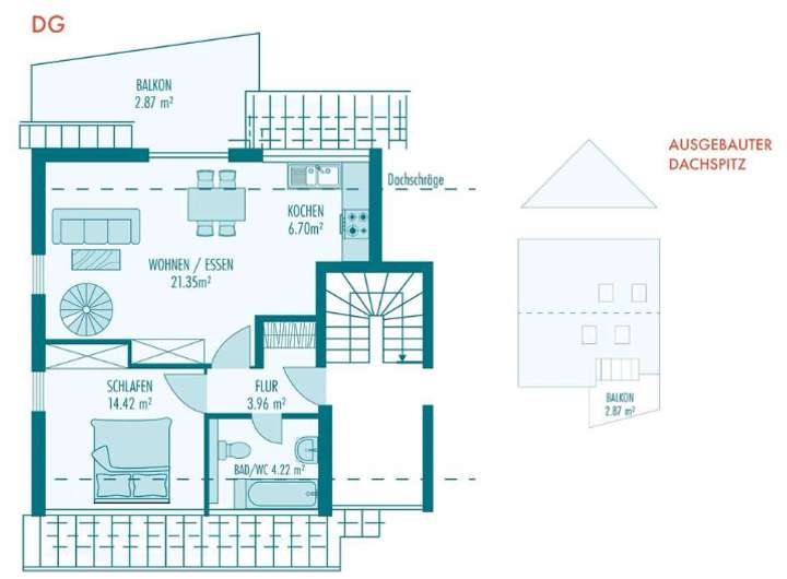 - ca. 21qm Nutzfläche im Spitzboden