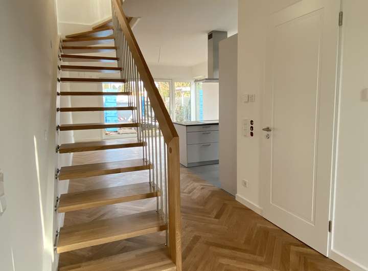 Eleganter Echtholzboden in allen Geschossen, im EG als Fischgräte.