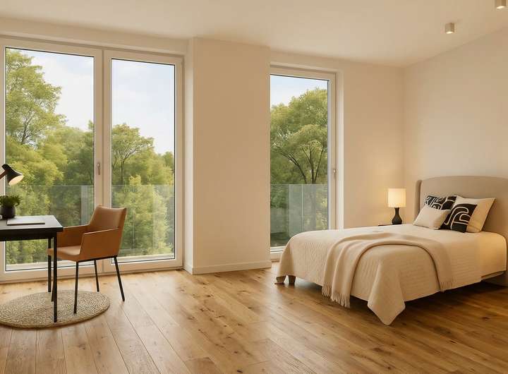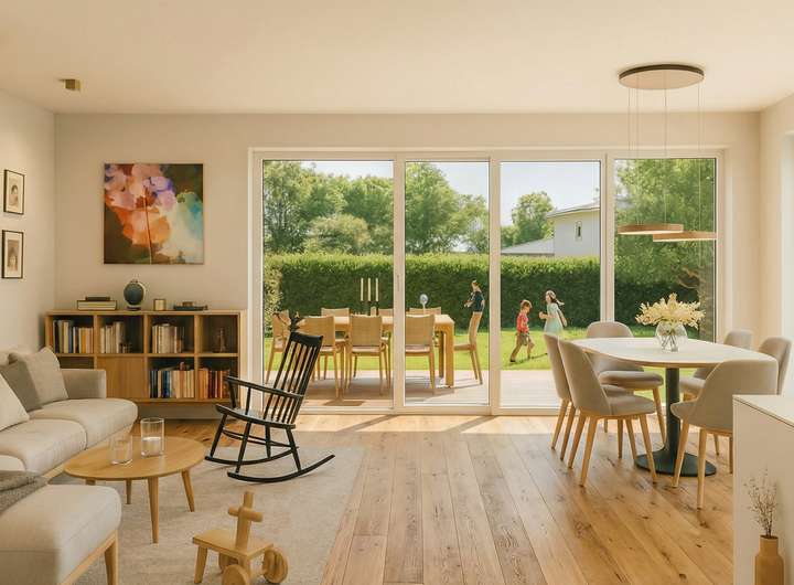 Auf einem Grundstück von etwa 360 m² entsteht diese moderne Doppelhaushälfte, deren Gegenstück bereits eine junge Familie als Ihre zukünftigen Nachbarn gefunden hat. Der Baubeginn ist für Anfang 2026 vorgesehen, die Fertigstellung pünktlich zu Weihnachten 2026. Das hier angebotene Haus orientiert sich weitgehend am Entwurf des bereits vergebenen Nachbarhauses, bietet jedoch zugleich umfangreiche Möglichkeiten zur individuellen Anpassung, sodass Ihre persönlichen Wohnwünsche optimal berücksichtigt werden können. Angeboten wird das Grundstück einschließlich eines vollständig kalkulierten Neubauvorhabens. Der ausgewiesene Gesamtkaufpreis setzt sich aus 670.000 € für das Grundstück sowie 1.065.000 € für das Haus zusammen und schafft damit eine klare und transparente Grundlage für Ihre Bauplanung. Die Doppelhaushälfte überzeugt mit einer klaren, modernen Architektursprache, einer hochwertigen Bauausführung und einem flexibel gestaltbaren Grundriss mit bis zu drei Kinderzimmern. Beim Betreten öffnet sich ein großzügiger und lichtdurchfluteter Eingangsbereich, der neben Platz für eine Garderobe auch ein stilvolles Gäste-Bad beherbergt. Der offen konzipierte Wohn- und Essbereich bildet das kommunikative Herz des Hauses. Große, bodentiefe Fenster schaffen eine fließende Verbindung zum Garten und den beiden Terrassenflächen und ermöglichen ein Wohnerlebnis, das den Innen- und Außenraum harmonisch miteinander verbindet. Im Obergeschoss stehen drei gut proportionierte Zimmer zur Verfügung, die sich variabel als Schlaf-, Kinder- oder Arbeitszimmer nutzen lassen. Ein komfortables Familienbad ergänzt diese Ebene. Das ausgebaute Dachgeschoss bietet einen großzügigen Raum, der sich ideal als Masterbereich eignet. Mit angrenzendem Bad entsteht hier ein privates Refugium – perfekt für Ruhe, Rückzug und persönlichen Komfort. Der vollunterkellerte, beheizte Wohnkeller mit einer lichten Höhe von ca. 2,50 Metern bietet weiteren wertvollen Raum. Auch energetisch und technisch erfüllt das Haus höchste Ansprüche. Eine moderne Luft-Wasser-Wärmepumpe, eine kontrollierte Be- und Entlüftungsanlage, eine Fußbodenheizung in allen Wohnetagen sowie anthrazitfarbene Fenster und Haustüren mit elektrischen Außenrollläden im Erd- und Obergeschoss schaffen ein zeitgemäßes und komfortables Wohnumfeld. Mit einer Wohnfläche von rund 185 m² bietet die Doppelhaushälfte ideale Voraussetzungen für unterschiedlichste Lebenssituationen. Die hohe Variabilität der Grundrissgestaltung ermöglicht es, das Haus exakt an die Bedürfnisse seiner zukünftigen Bewohner anzupassen.
