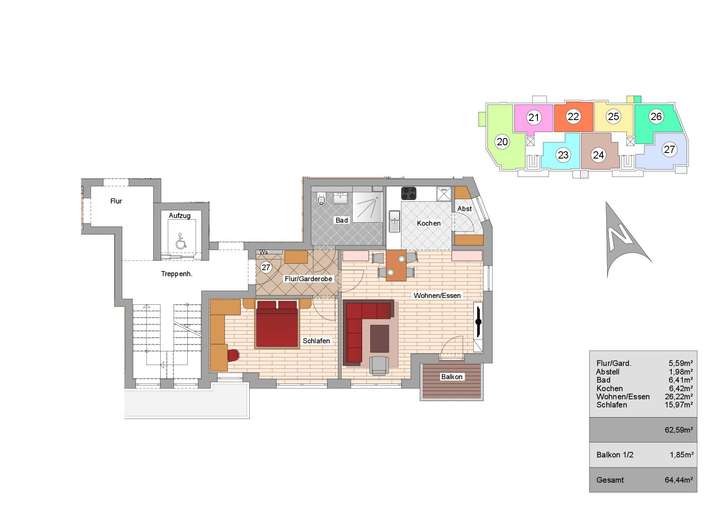 Die moderne 2-Zimmer Wohnung, mit einer Wohnfläche von circa 65 m², bietet Ihnen nicht nur viel Platz, sondern auch einen durchdachten Grundriss, der modernes Wohnen perfekt umsetzt.