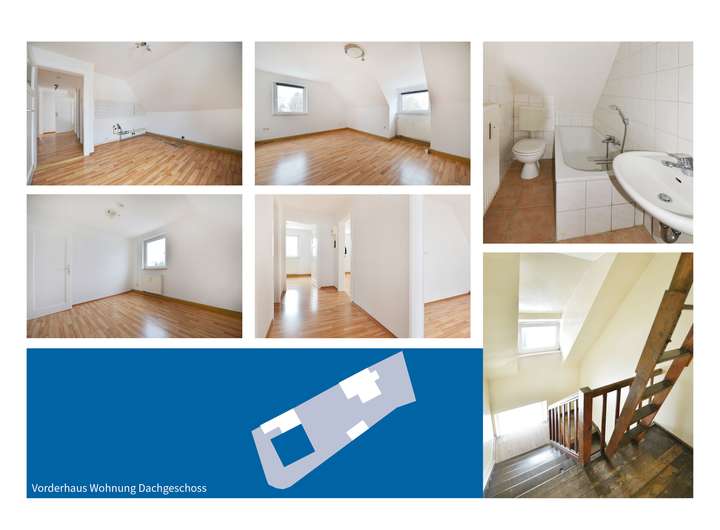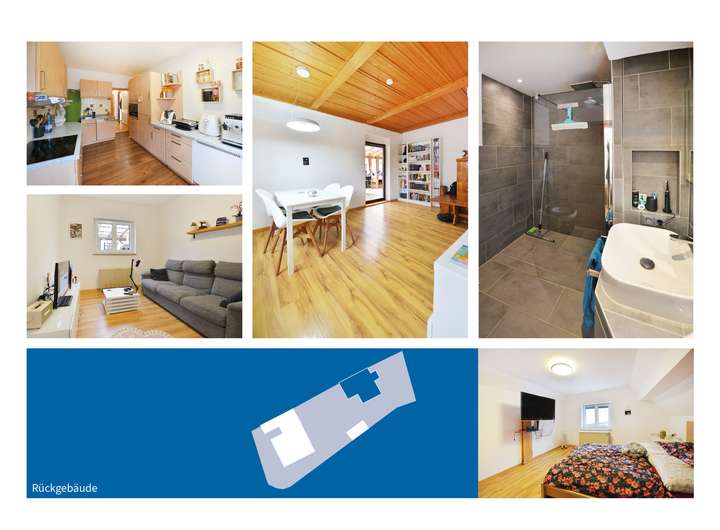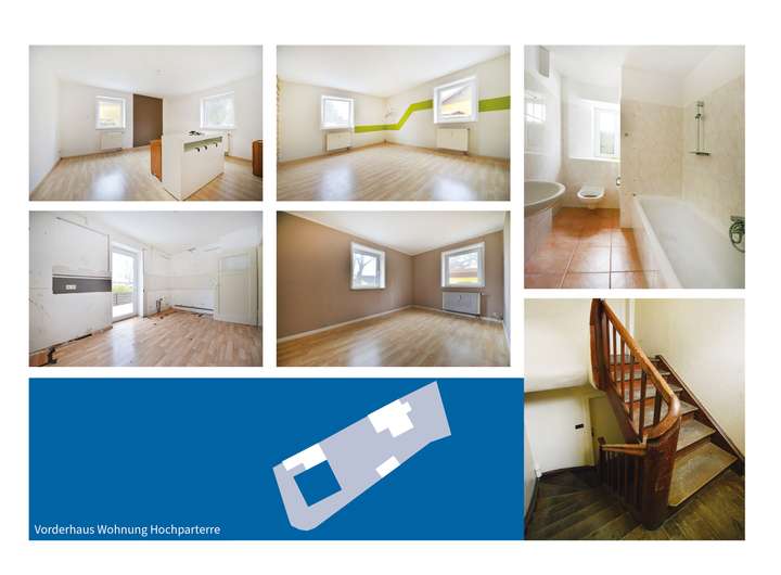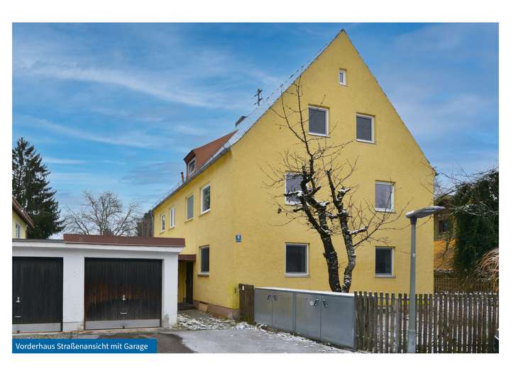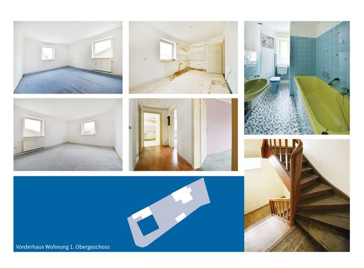 Auf dem Grundstück befinden sich zwei Häuser. Das Vorderhaus, Bj. ca. 1930, ist leerstehend und verfügt über eine Wohnfläche von ca. 210 m2, aufgeteilt auf drei Wohnungen und ist,