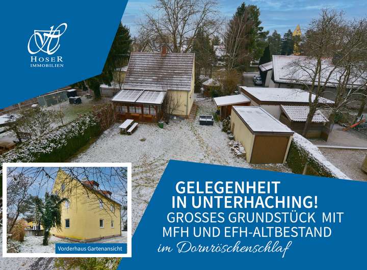 Dieses gut geschnittene, ca. 1000 m2 große Grundstück in einer ruhigen, schönen Wohngegend von Unterhaching bietet großes Potential für Aufteiler, Kapitalanleger oder auch Eigennutzer.