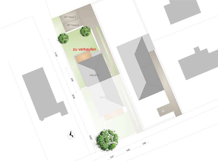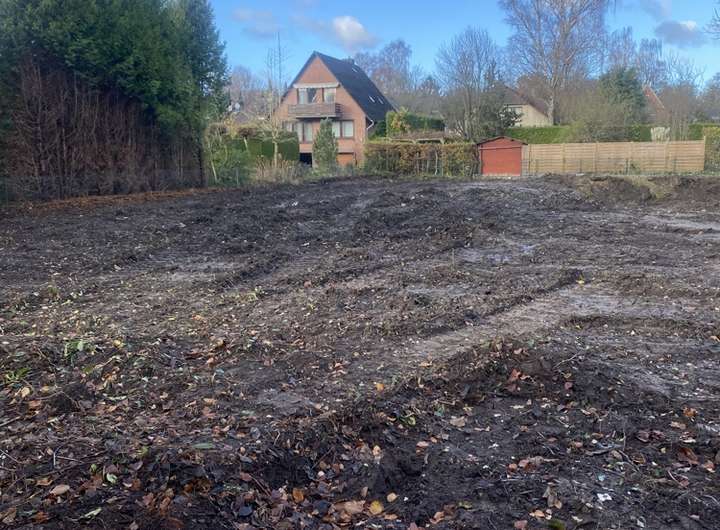 Abriss 1/4 . Roden, Versetzen von Pflanzen,Wurzelsuchgraben Ersatzpflanzungen. Vermessungskosten
