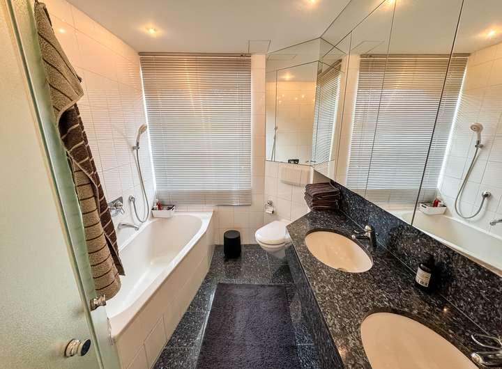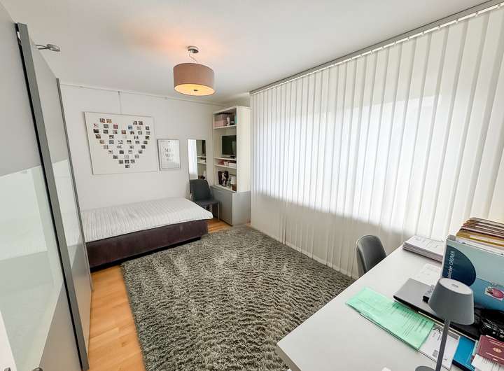 Im Obergeschoss stehen Ihnen vier gut geschnittene Schlafzimmer zur Verfügung. Zwei der vier Schlafzimmer verfügen über eine etwas geringere Größe, sind jedoch optimal zum Beispiel als Gäste- oder Arbeitszimmer nutzbar. Das Tageslichtbad verfügt über eine Badewanne und eine separate Dusche. Zwei der Schlafzimmer bieten zudem Zugang zu einem großen Balkon mit schönem Ausblick in den Garten.