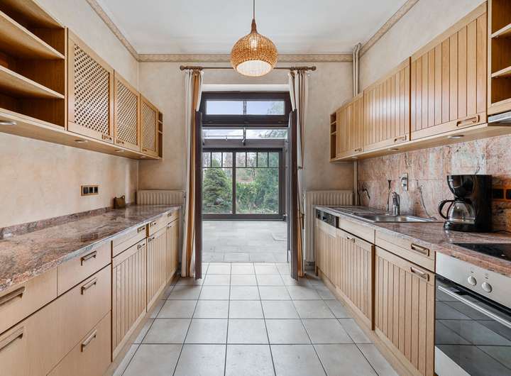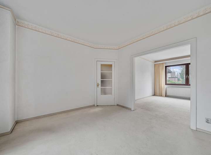 Klassische Raumaufteilung mit Erdgeschoss mit Deckenhöhen von etwa 2,85 m. Ineinander übergehender Wohn- / Essbereich mit Pitchpine Holzdielen-Fussboden. Großer, heller Wintergarten mit Naturschiefer-Fussboden und Fussbodenheizung sowie breiter Schiebetür zum Garten. Geräumige Küche sowie Gäste-WC. Im Dachgeschoss befinden sich zwei Zimmer, ein Bad sowie ein Abstellraum. Originale Holzinnentüren, doppelverglaste Holzfenster. Die Heizungsanlage mit Warmwasserbereitung wurde 2010 erneuert. Gut belichteter Raum im Kellergeschoss (etwa 13 m²) für Hobbyzwecke. Es besteht Sanierungsbedarf.