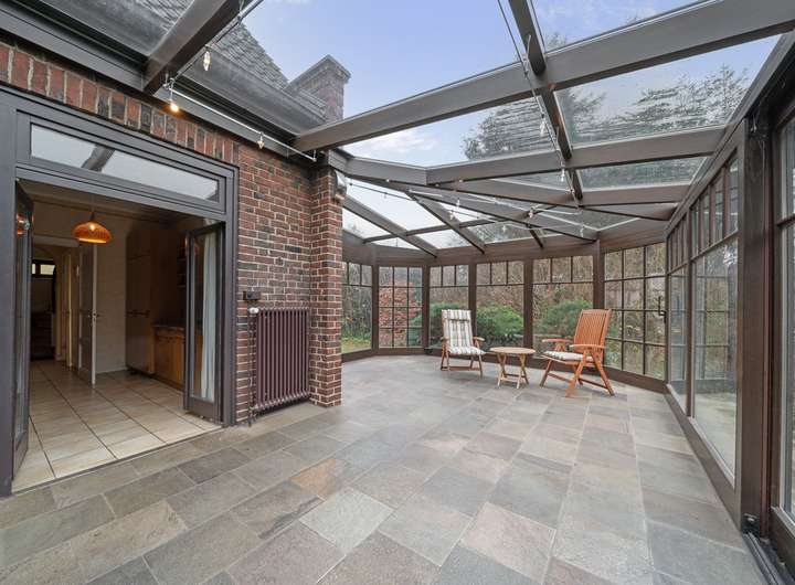 KLASSISCHES DOPPELHAUS MIT REIZVOLLEM WINTERGARTEN UND ERWEITERUNGSMÖGLICHKEIT AUF BREITEM GRUNDSTÜCK IN SEHR RUHIGER WOHNLAGE.