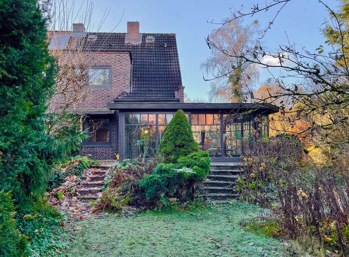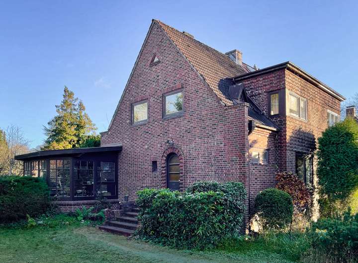 Das klassische Rotklinker Doppelhaus wurde 1928 erbaut und im Jahre 1993 durch einen großzügigen Wintergarten erweitert.
