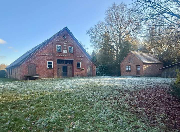 Die Hofstelle umfasst fast 3 Hektar Land und wurde ca. im Jahr 1706 gegründet. Es beherbergt ein altes Bauernhaus, das heute als abrissreifes Altobjekt gilt – und Ihnen die seltene Chance bietet, Ihr individuelles, großes Traumhaus an einem ganz besonderen Ort zu verwirklichen.