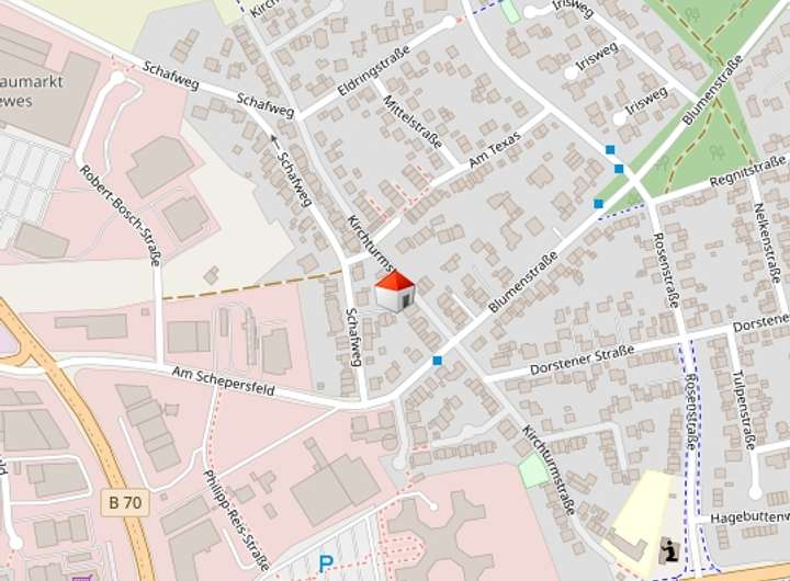 Auch verkehrstechnisch überzeugt die Lage. Die Weseler Innenstadt ist in wenigen Minuten mit dem Fahrrad oder Auto erreichbar, und eine gute Anbindung an den öffentlichen Nahverkehr sorgt für flexible Mobilität. Die Zufahrtsstraßen zu den umliegenden Städten sowie die Achsen Richtung Ruhrgebiet und Niederrhein sind schnell erreicht – ideal für Berufspendler.