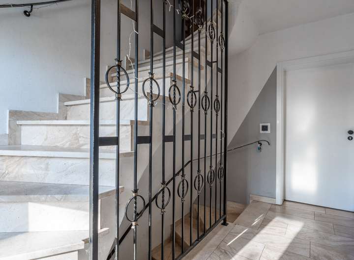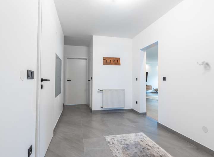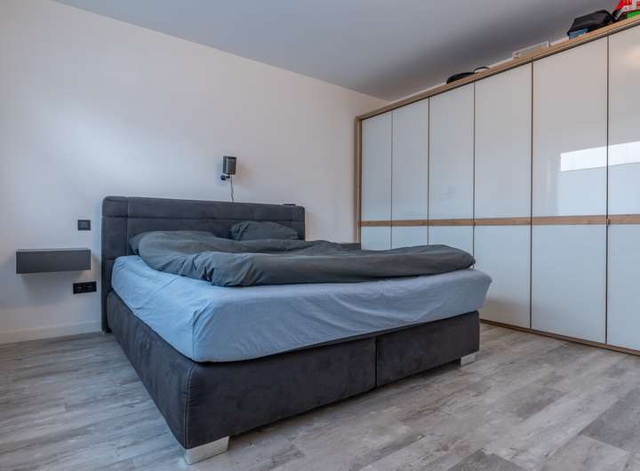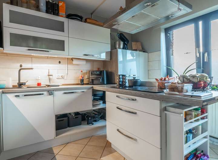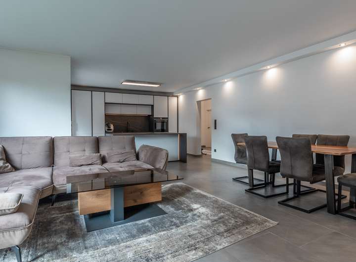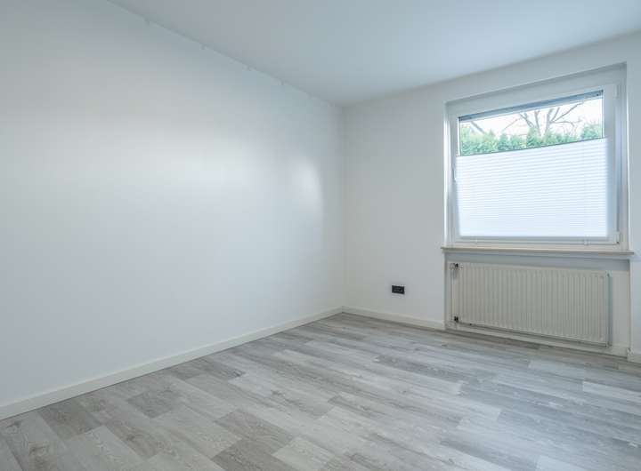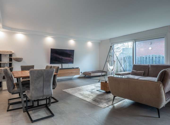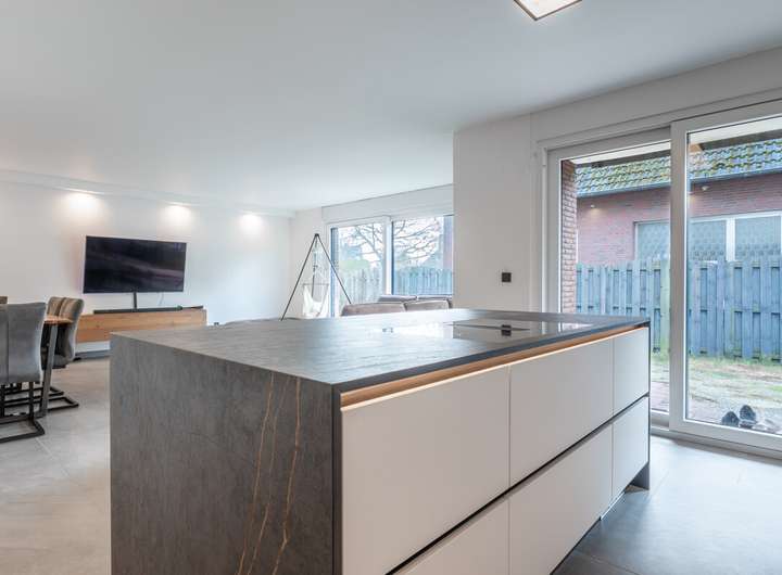 Die Erdgeschosswohnung wurde 2022 vollständig saniert und präsentiert sich modern und hochwertig ausgestattet. Neue Elektrik, Fenster und Türen, große anthrazitfarbene Fliesen sowie ein elegantes Schwarz-Weiß-Design schaffen ein stilvolles Wohnambiente. Highlight ist die offene Küche mit Kochinsel, Miele-Kochfeld, Quooker-Wasserhahn und direktem Zugang zur Terrasse. Das großzügige Badezimmer verfügt über Badewanne und ebenerdige Regendusche. Zwei Kinderzimmer, Schlafzimmer, Gäste-WC, Hauswirtschafts- und Abstellraum runden das Raumangebot ab.
