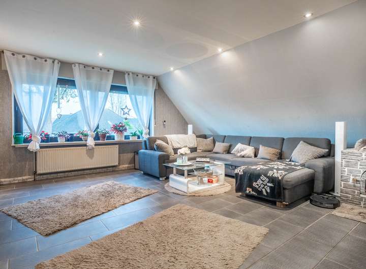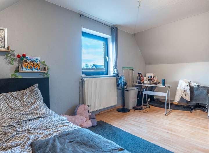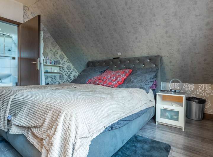 Die Obergeschosswohnung überzeugt mit Balkon, lichtdurchflutetem Wohnbereich, separater Küche, großem Schlafzimmer mit eigenem Bad sowie zusätzlichem Wohnraum im ausgebauten Spitzboden mit drei weiteren Schlafzimmern und einem zusätzlichen Badezimmer.