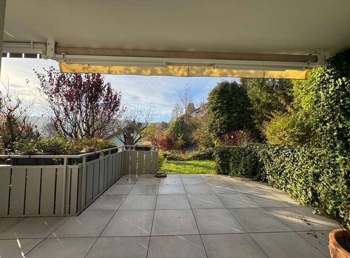 Ein Zuhause zum Abschalten: Große Terrasse mit Weitblick und hellen Räumen