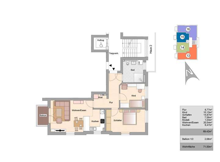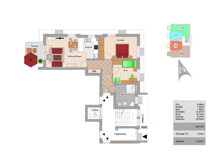 Die modernen 3-Zimmer Wohnungen, mit einer Wohnfläche von circa 68-72 m², bietet Ihnen nicht nur viel Platz, sondern auch einen durchdachten Grundriss, der modernes Wohnen perfekt umsetzt.