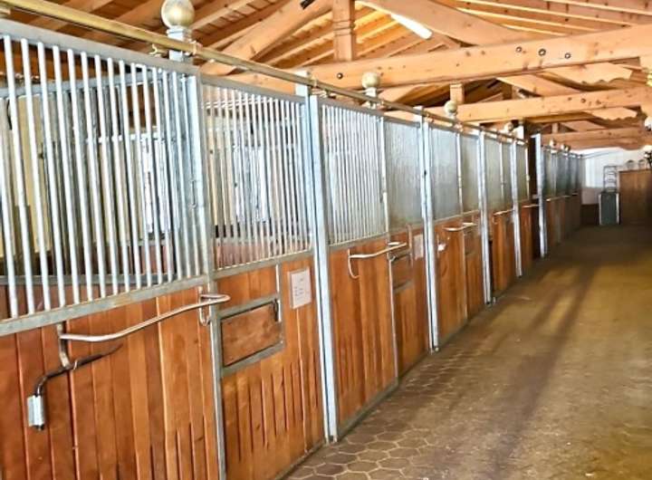 Die Stallungen gliedern sich in mehrere Bereiche. Ein separater Hengststall bietet zehn Boxen sowie eine eigene Sattelkammer, während der Stutenstall mit siebzehn Einzelboxen, einer Abfohlbox, einer Lüftungsanlage, eigener Sattelkammer sowie Bad und separatem WC ideal für Zucht oder sportliche Nutzung ausgestattet ist.