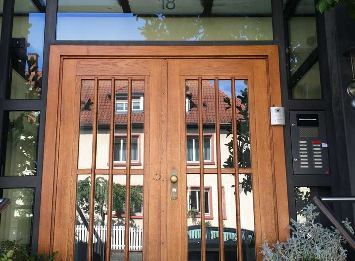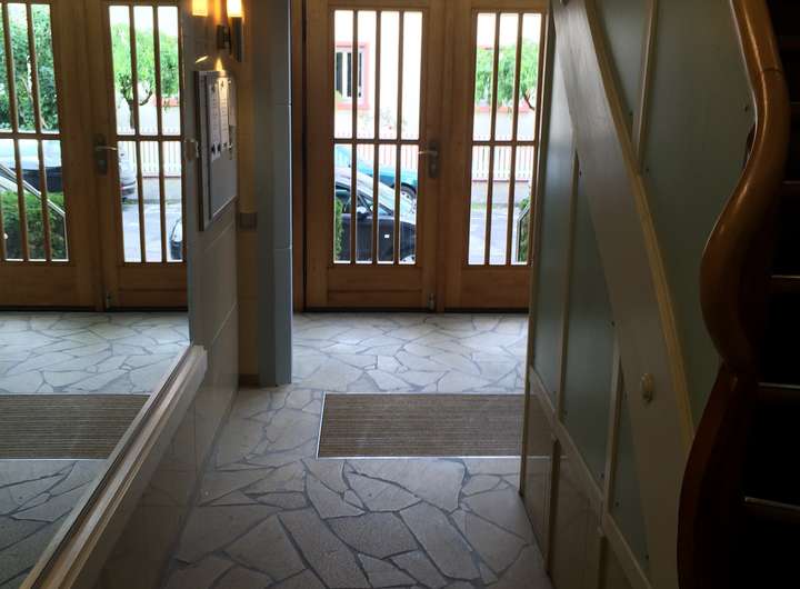 Das Appartement liegt im Erdgeschoss eines Mehrfamilienhauses.