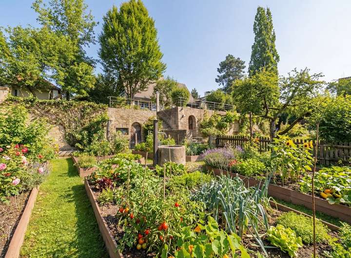- aufwendige Gartenanlage über zwei Ebenen mit Bauerngarten, Weinkeller, Kappelle und diversen Lauben