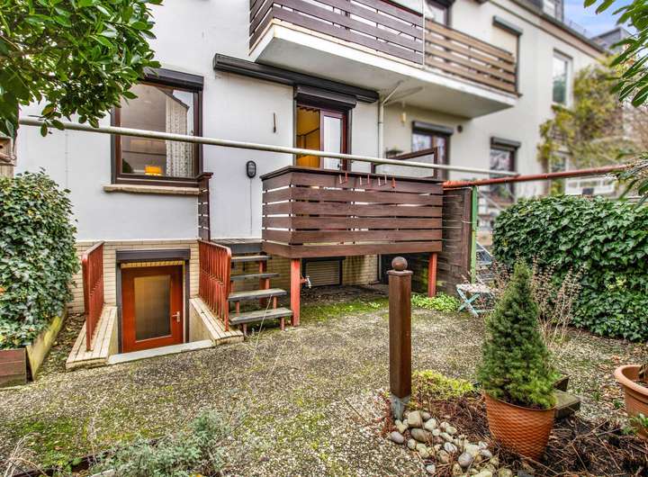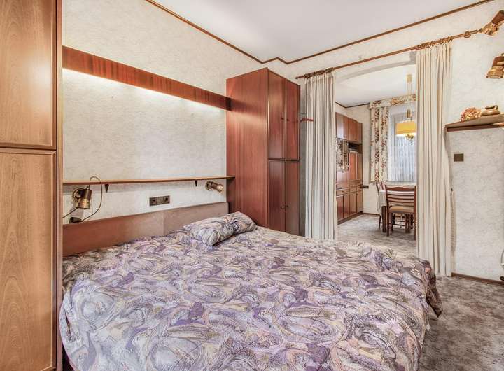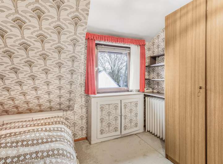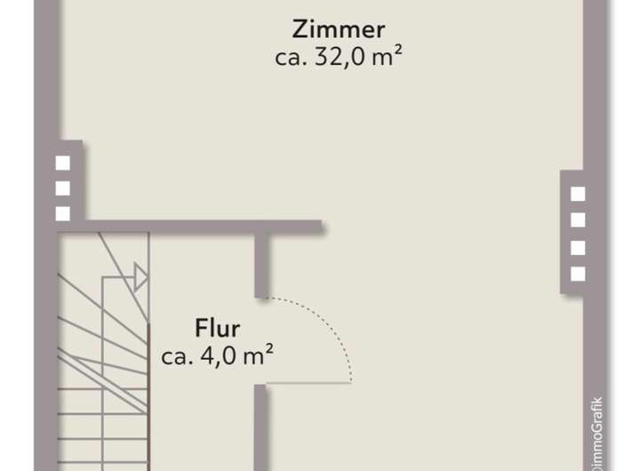 Über eine Vollholztreppe erreichen Sie das Obergeschoss. Hier befindet sich ein großzügiges Zimmer, das vielfältige Nutzungsmöglichkeiten bietet – ob als Schlafzimmer, Studio oder Kinderzimmer. Bei Bedarf lässt sich der ursprüngliche Grundriss mit zwei separaten Zimmern problemlos wiederherstellen. Auch auf dieser Etage lädt ein weiterer Balkon mit Markise zum Verweilen ein und bietet einen schönen Blick in die Nachbarschaft.